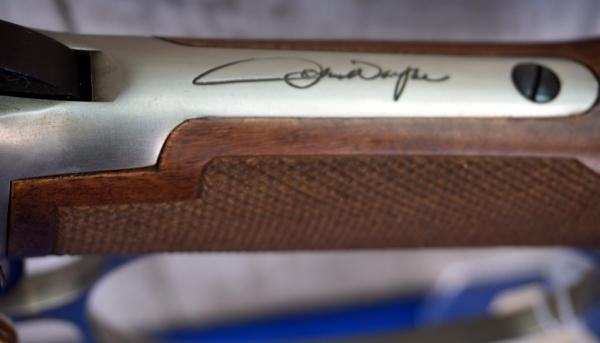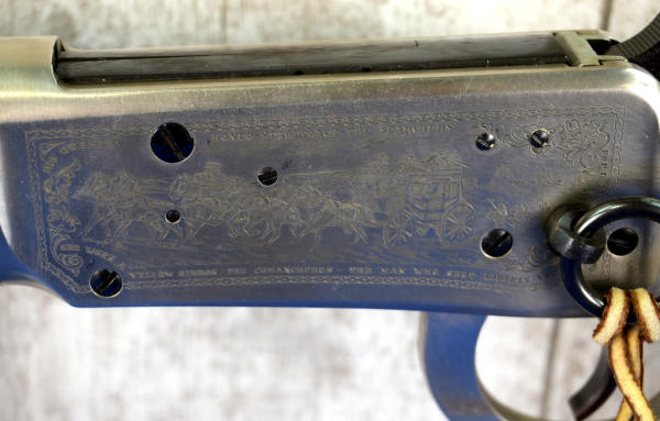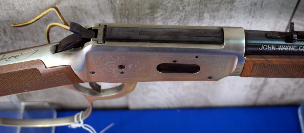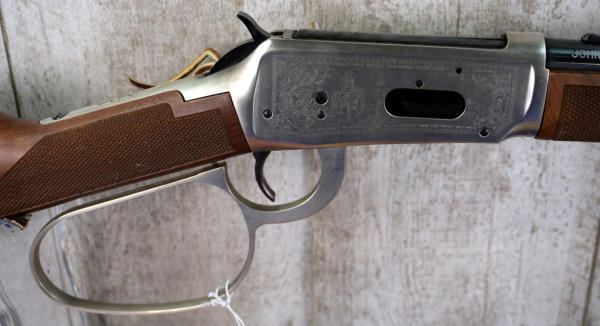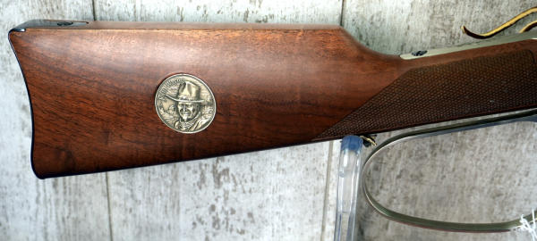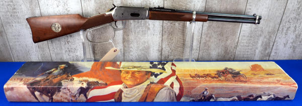 18" BBL; large loop; engraved stainless receiver; mint & unfired; medallion in stock; graphic box but label does not match the gun, but is the correct box for this gun; arguably the most sought after Winchester commemorative! USA; SN#JW27251; A-341