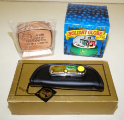 #304 - Lot of JD Items--Franklin Mint Model B Pocket Watch, Holiday Globe, & Credit Union Bank
