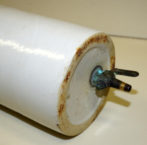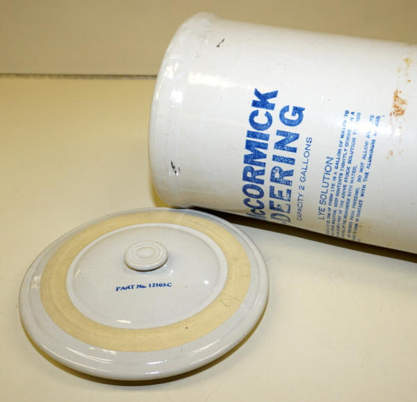 15.5" tall, small chip on the bottom of the edge, otherwise nice; used and the glaze is gone on the inside, Mint lid