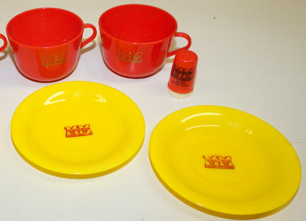 4 cups & saucer sets plus a set of S&P Shakers, all nice, all to go