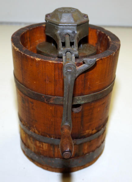 6"x5" across, looks complete, wood with cast iron crank with "Wonder" Cast into the top, some general wear, but overall good condition