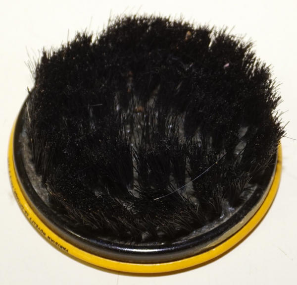 3.5" across, missing a few bristles, some aging, dated 1924 on the edge