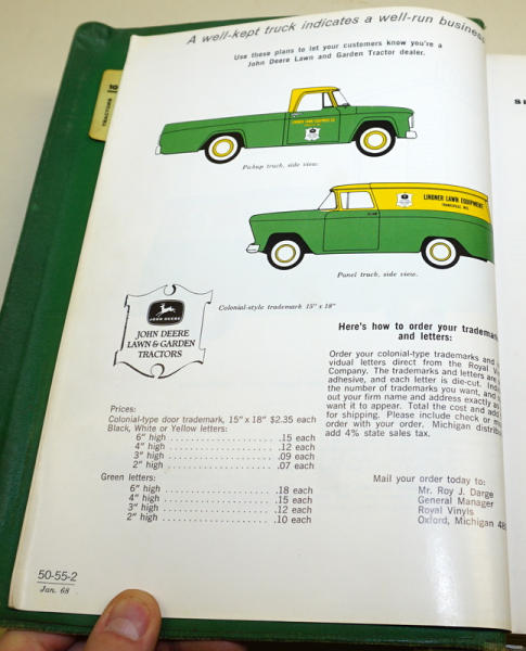 this includes the 20-series tractors, but no 8010/8020; first pages show a really JD L&G Delivery vehicles in color! Some normal wear, but overall a good original