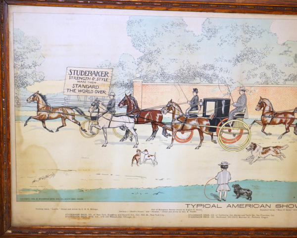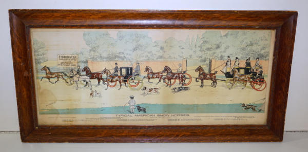 15"x30", some water stains and aging, original oak frame has some wear, neat graphic piece