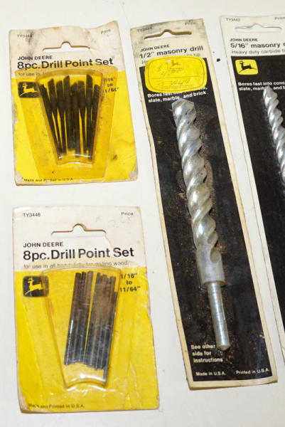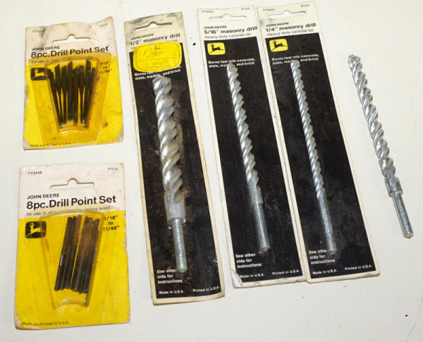 one bit is loose, otherwise all are in the packaging, drill points packages have heavy wear, Masonry bits are pretty good, all to go
