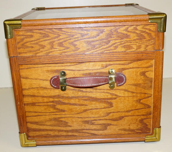 17" tall, 18"x18" square, high-quality, no tray inside, but has the key; no shipping, pickup in Wakonda only from online buyers