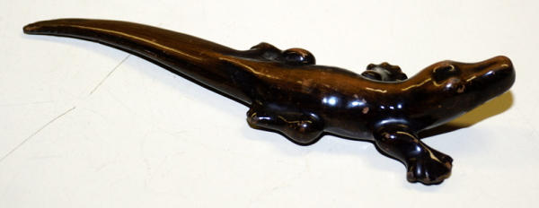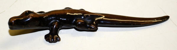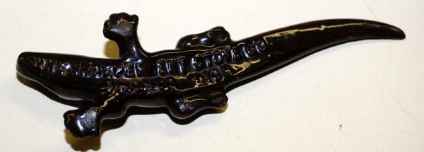 5.5" long, beautiful glaze finish, nice piece, advertising on the bottom