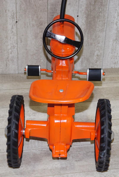 All new axle, chain, bearings, pedal crank, tires, pedals & more, muffler was added; looks like the top of the hood was damaged and repaired during restoration