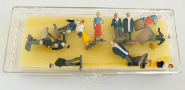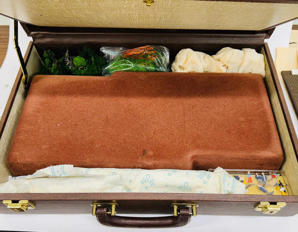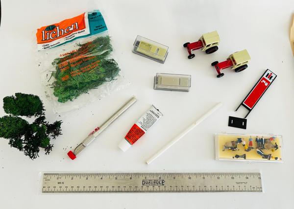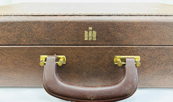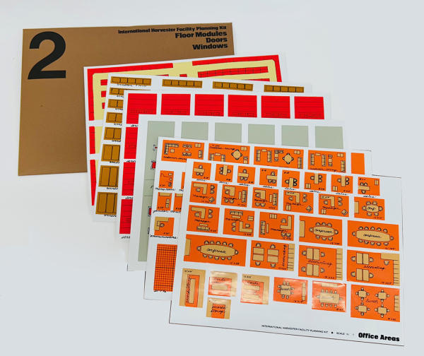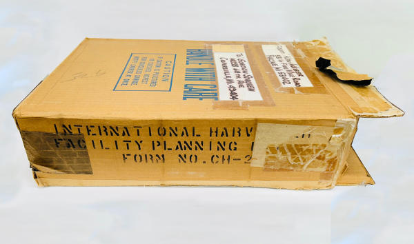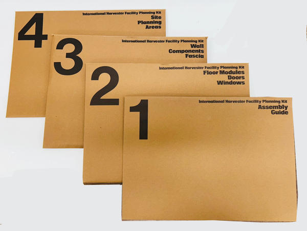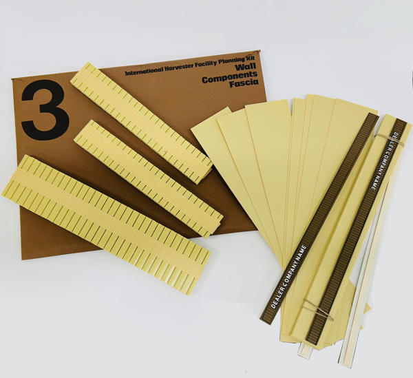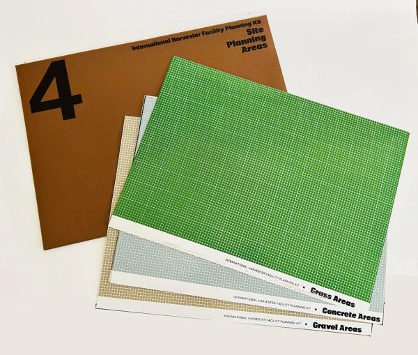 Great set, all complete and even has the original shipping box, figurines, 1/64th scale 66-series tractors and more; this was to mock-up your dealership layout before you built a new shop, very cool piece!