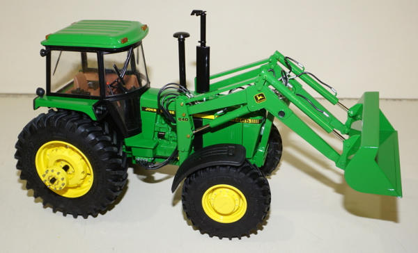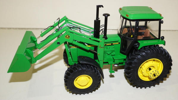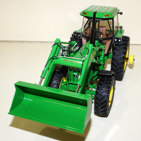 High-Detail tractor, 20.8x38 rears, 14.9x28 fronts, axle hubs with painted bolts, weights, front fenders, 3pt w/ quick hitch; Loader is mostly scratch built and has custom parallel link loader arms to keep the bucket level! This is a top of the line, premium custom tractor!
