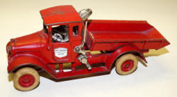 #47 - Buddy L 1920's Large Pressed Steel Dump Truck--open cab w/ Chain mech. Dump