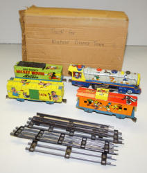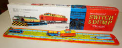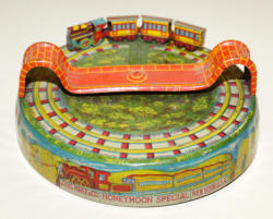 Plastic Engine & Tender w/ Tin-litho cars, complete with track, shows nearly no play wear, box is nice with some light aging