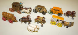 #332 - Lot of reproduction cast iron toys--Light house, Horse Drawn & misc. toys