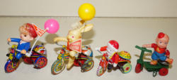 #295 - (4x) Vintage Tin & Plastic Windup Tricycle Toys--all different