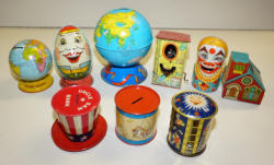 #300 - Lot of Vintage Tin-Litho Banks--Globes, Humpy Dumpty and others
