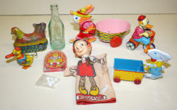 #312 - Lot of Vintage Tin-Litho Toys--includes Large Rabbit w/ Basket, Egg Laying Chicken, Pinocchio Puppet & more