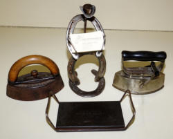 #323 - Lot of Antique Sad Irons Plus a Horseshoe business card holder
