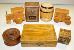 #326 - Lot of WOOD Banks--includes a custom made brass mailbox bank