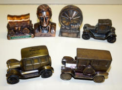 #328 - Lot of Pot Metal Banks--Abe Lincoln, Covered Wagons, & Cars