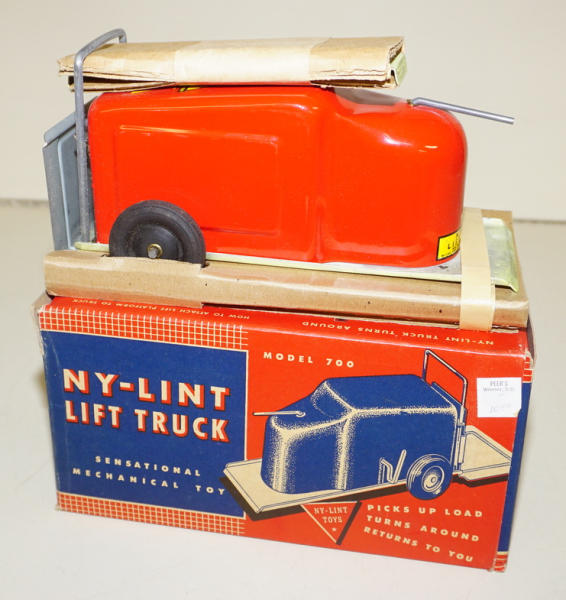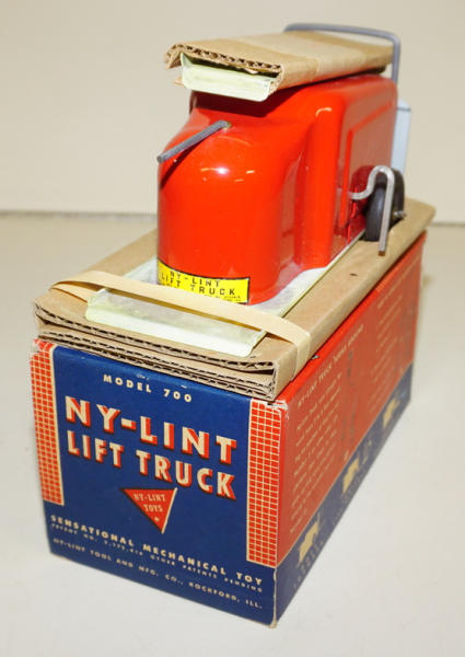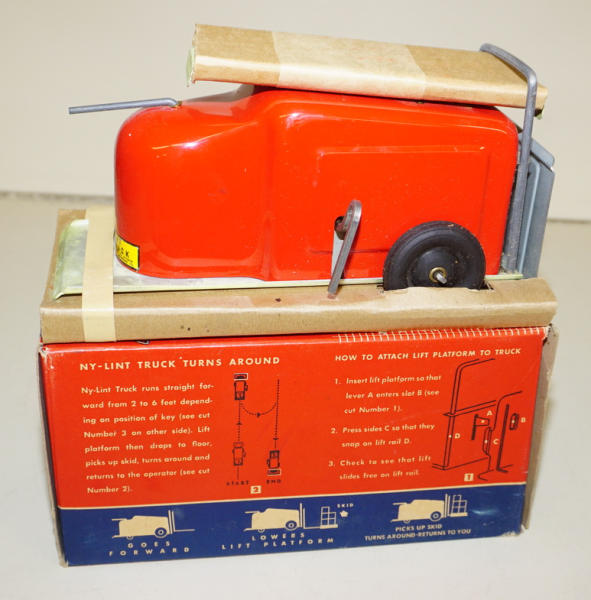 9" long, absolutely mint condition toy, parts are still wrapped in cardboard and still taped to the box liner; has the original $10 price tag on it from Peer's of Winner, SD; we sold this piece many years ago when a stash of NOS toys was found out in Winner, box has minor edge wear, but overall is near mint too