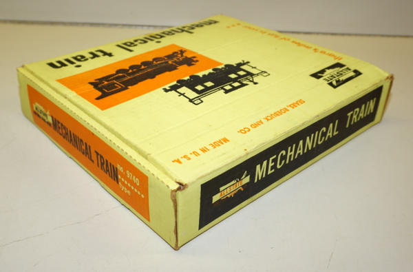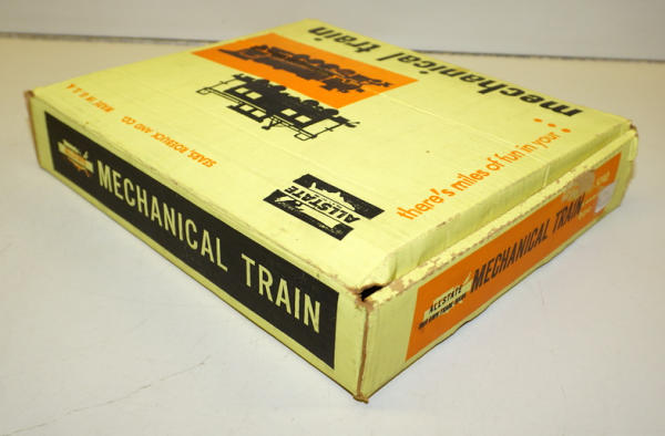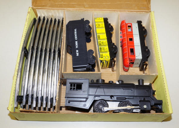 Plastic Engine & Tender w/ Tin-litho cars, complete with track, shows nearly no play wear, box is nice with some light aging