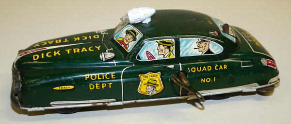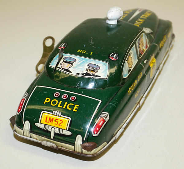 11" long, no box, key wind does not work, has scuffs and play wear, rates 85% condition; did not test the battery box