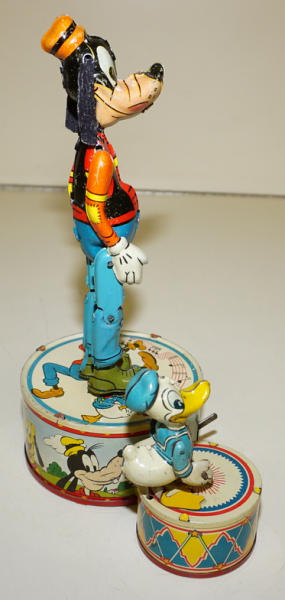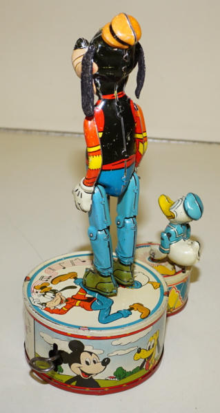 11" tall, dated 1946, windup works good, some small scuffs and scratches, but overall very nice