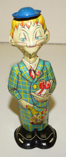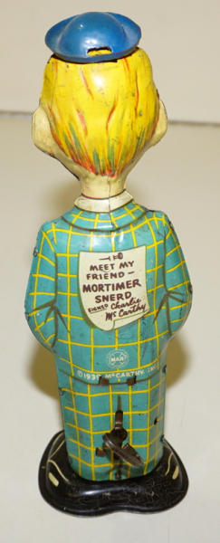 8.5" tall, dated 1939, windup works good, colors are a little faded and has some light play wear