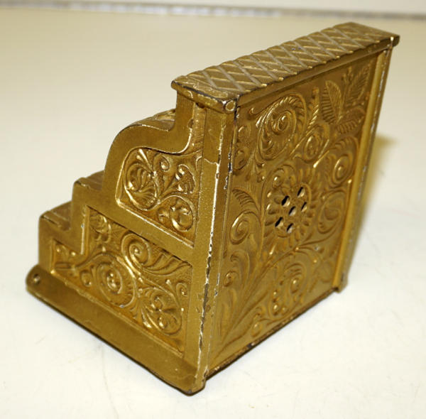 5.5" tall, 4.5" wide, repainted, has the key taped to the bottom
