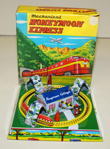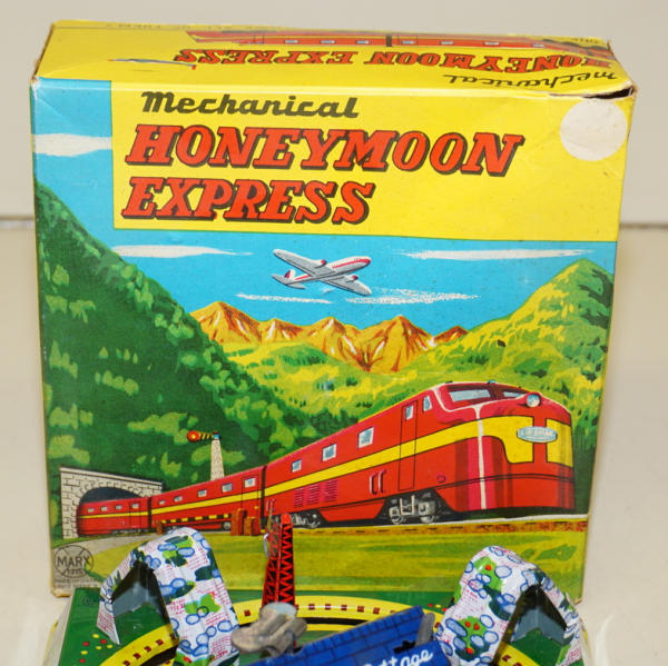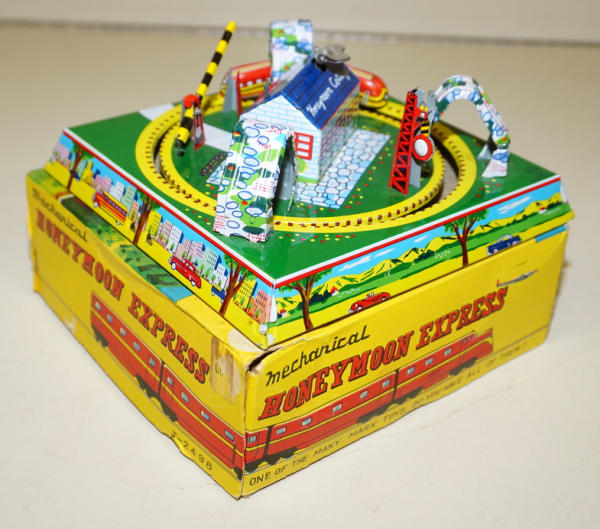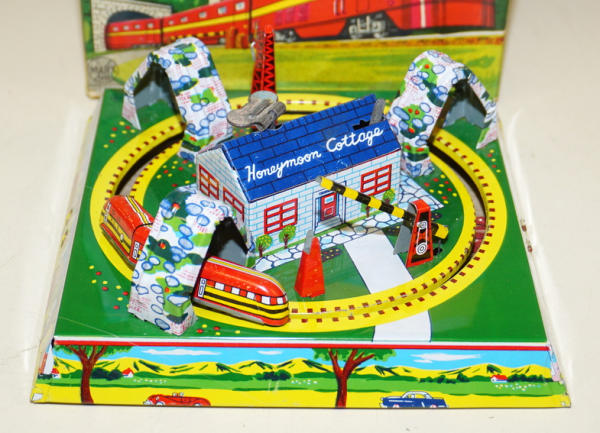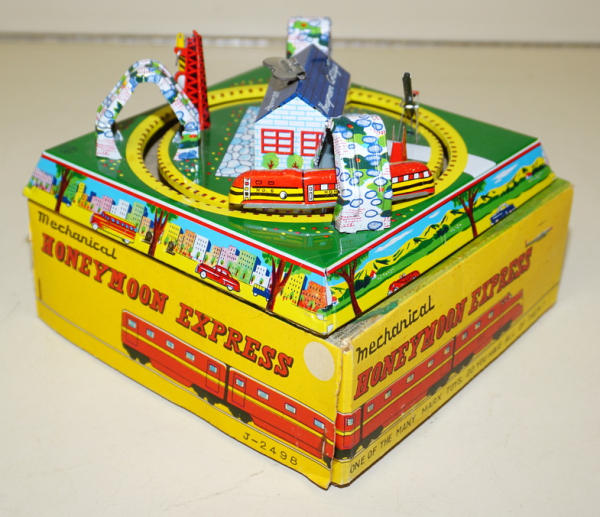 7"x7" base, windup works good, great graphic 2pc box with light wear