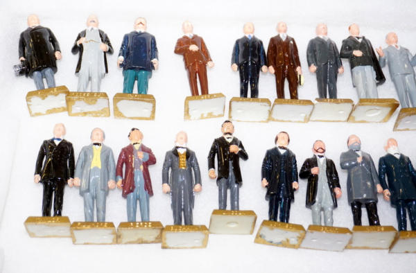 all about 2.5" long, plastic, neat older set, comes with a showcase to display