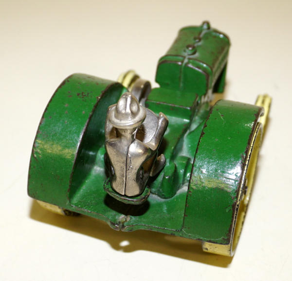 6.25" long, nice original paint, 80% or better, original driver with great nickel plating, pull string loop on the front is good, overall a really nice original,