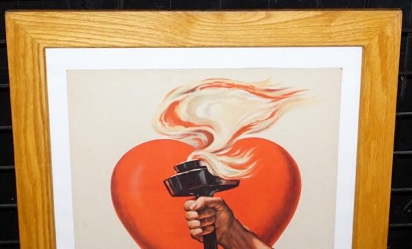 17"x23" plus the frame, heavy oak frame, poster is nice; if you want it shipped, we will take out of the frame