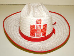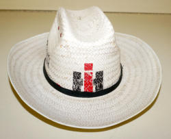 #335 - IH White Straw Cowboy Hat w/ "Premium Pickers" & "Capacity Combines" Stenciling