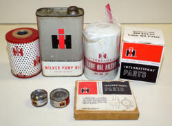 #357 - Box Lot of IH Filters, 1qt Milker Can, and Parts boxes--includes some very small sealed bearing boxes too