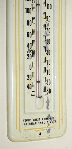 13" tall, lots of advertising, some light paint loss on the numbers and general wear