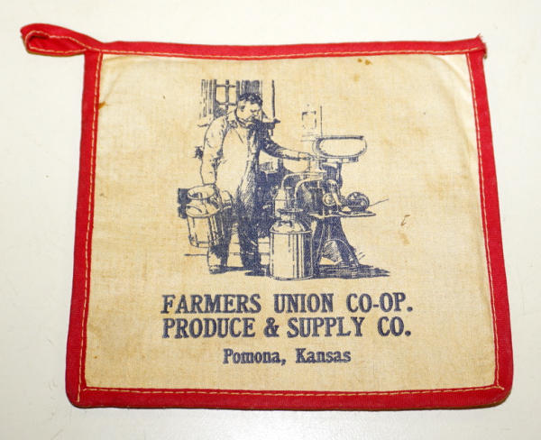 5.5"x5.5", great advertising on both sides, no holes, but a little discolored from age
