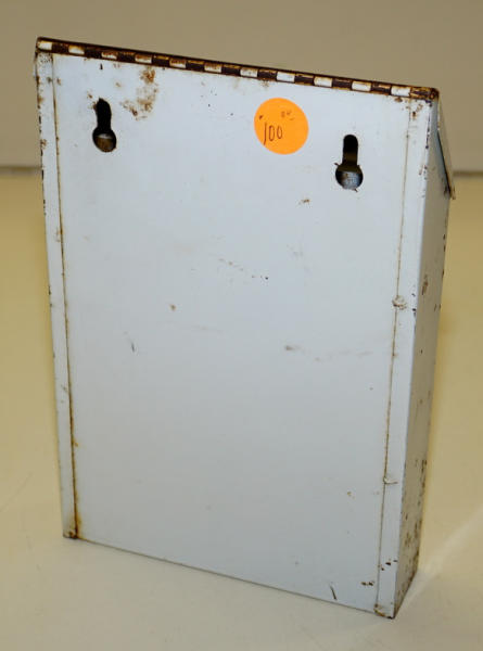 8"x5.5", some rust on the lid and sides, but advertising side is pretty good, unique piece