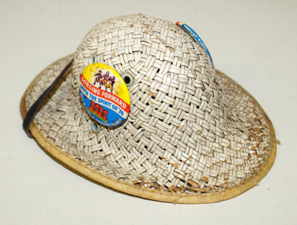 just 7" long, has some wear and a little out of shape, includes 2 original MM pinbacks with some aging too