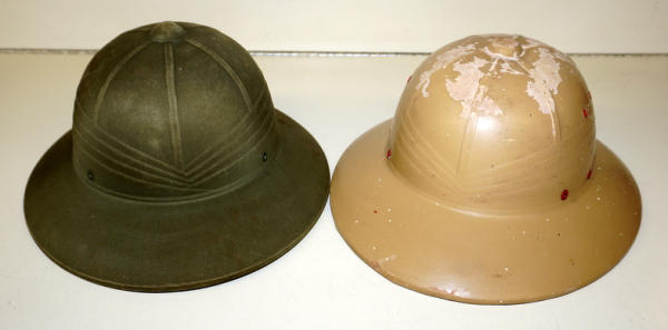 Green one has nearly no decal left, Brown one is OK, but has scattered white paint, sells as a set