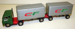 Diecast cab & steel trailer, paint on the cab is about 80%, paint on the trailer is about 85%, but the decals on both sides have quite abet of flaking