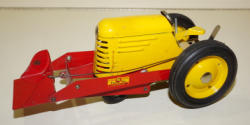 1950's plastic, missing the drawbar and tips of the blade are broken off, I think new decals on the side too