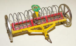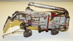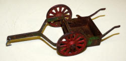 old tin-wheel gear has play wear, scratch made wood bed is nice condition
