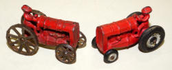 #791 - (2x) Small Fordson Cast Iron Tractors--one on steel, one on rubber