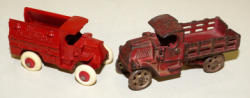 #792 - (2x) Small Cast Iron Trucks--Repainted Bell Telephone & C-Cab Mack Stake--original