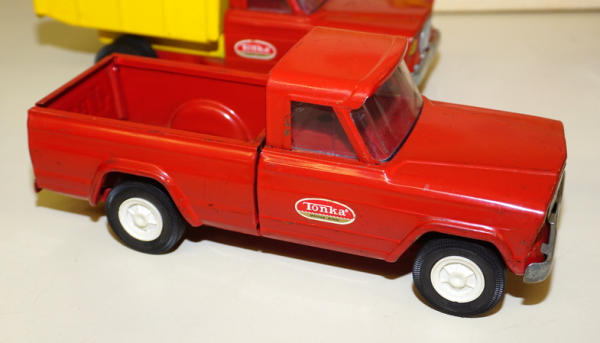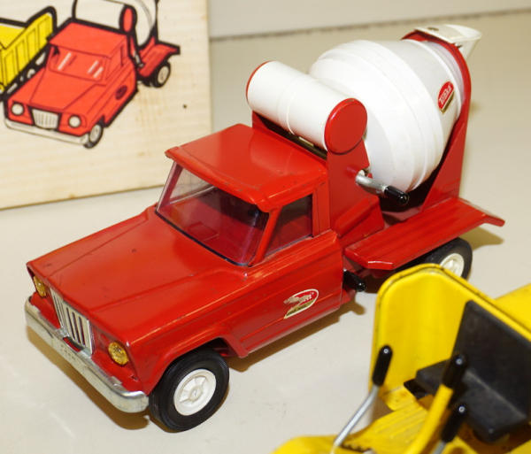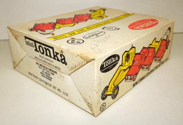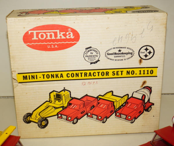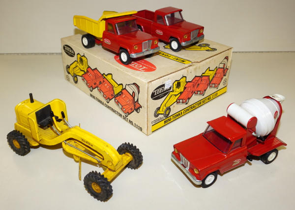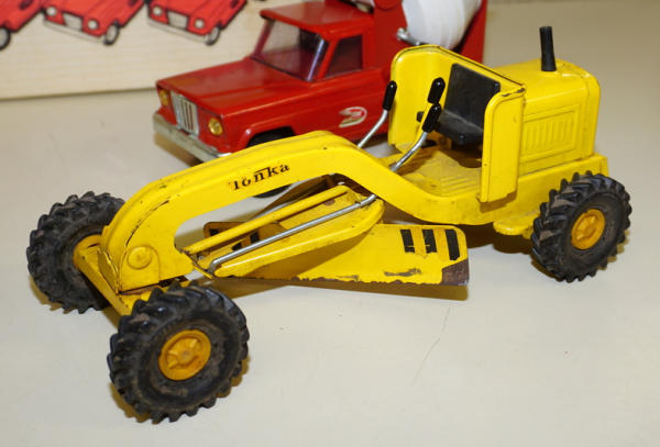Toys are played with, rate from 95% to 85%; the Road grader has the most wear and paint loss to the blade, no box liner, box is square, some age spots and writing, overall box rates 8 condition