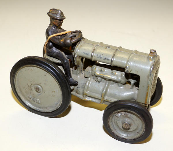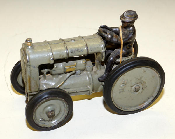 paint is nice, 90% or so with the "Fordson" Stamp on the grill and gold highlights, 5.25" long, driver is original, but has a rubber band holding him on
