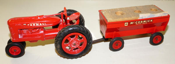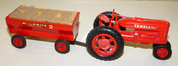 front rims on the tractor has been replaced, wagon has a block in the back to keep it from warping, sells as a set, some wear