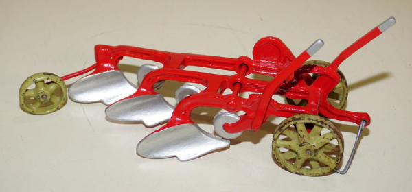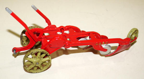main body of the plow has been repainted, one lever for sure has been repaired, wheels are original and pretty good original paint