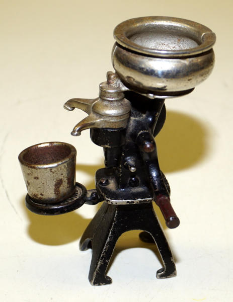 5" tall, good original with some paint loss, original bucket included, but has rust inside